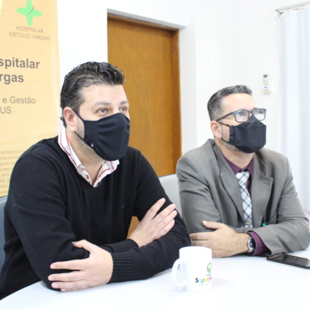 O diretor-geral da Fundação Hospitalar Getúlio Vargas (FHGV), Tércio Erany Tedesco Júnior, apresentou um relatório de ações dos primeiros seis meses da nova gestão da instituição à secretária da Saúde do Rio Grande do Sul, Arita Bergmann. A apresentação se deu de forma online e contou com as presenças dos diretores Administrativo e Financeiro, Marco Antonio Baldo; de Atenção à Saúde, Marcelo Bastiani Pasa; e de Gestão e Desenvolvimento de Pessoas, Rafael Teixeira Dutra. O gerente Administrativo do Hospital Tramandaí, Roger Esteves, também acompanhou a exposição.