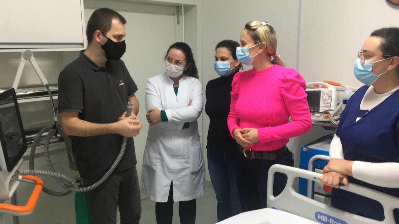 O LUFT5 é moderno e desenvolvido especialmente para equipar unidades de terapia intensiva e facilitar a assistência prestada pelos profissionais de saúde. O curso foi ministrado por um técnico da empresa Leistung que desenvolveu o equipamento. “As orientações foram sobre as novas funções desse ventilador pulmonar que auxilia os profissionais no manejo do paciente grave”, afirma a enfermeira chefe da emergência, Camila Voigt Ferreira.