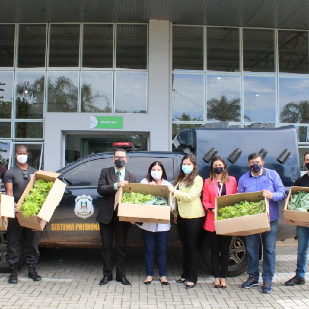Hortaliças colhidas na penitenciária estadual de Sapucaia são entregues ao Getúlio Vargas