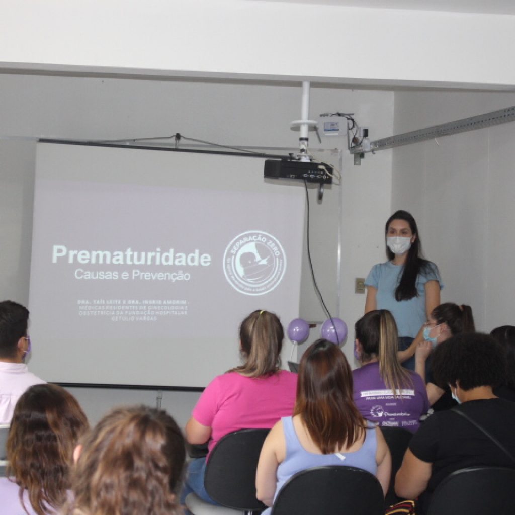 Nesta quarta-feira (17/11), é o Dia Mundial da Prematuridade, e no calendário da saúde, considera-se também este mês como roxo, servindo para alertar sobre os partos prematuros, como preveni-los, e informar a respeito das consequências do nascimento antecipado. Com o intuito de orientar sobre o assunto, a Linha de Cuidado Mamãe, Bebê e Criança do Hospital Municipal Getúlio Vargas (HMGV) organizou palestras para técnicos de enfermagem, enfermeiros e médicos.