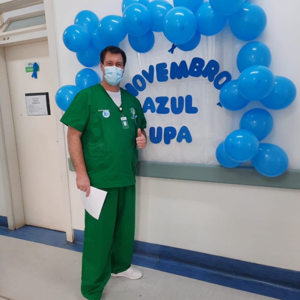 As equipes de saúde que atuam na Unidade de Pronto Atendimento (UPA) de Sapucaia do Sul estão mobilizadas em prol da conscientização sobre os cuidados com a saúde do homem no Novembro Azul. Esse mês serve para trabalhar a prevenção das doenças masculinas com ênfase no diagnóstico precoce do câncer de próstata. Para promover o bem-estar dos homens, neste mês, além de orientações a respeito da saúde masculina, estão programadas ações de autocuidado: limpeza de pele, ginástica laboral, sessão de reiki, entre outras.
