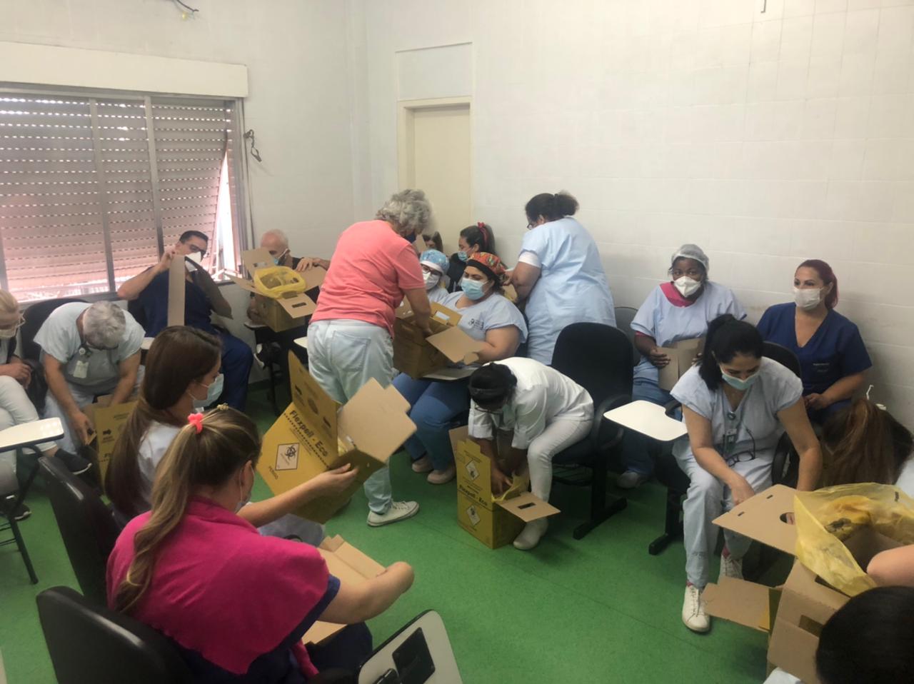 Além disso, as técnicas de segurança do trabalho fizeram uma oficina de montagem de descarpack. Para realizar o trabalho, as profissionais contaram com o apoio dos plantões administrativos do turno da noite, Elton Muniz da Rocha e Isabel Cristina Radmann.