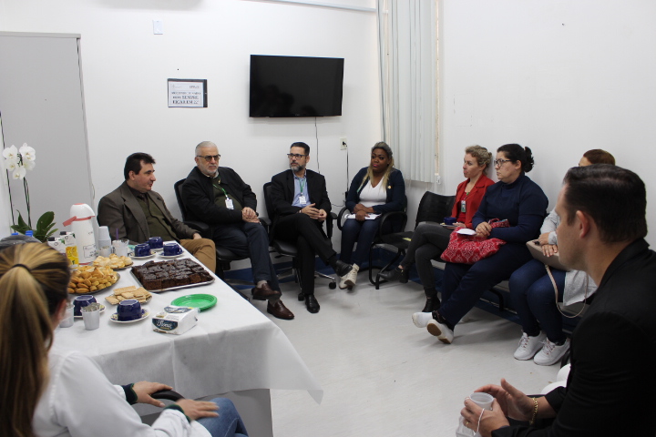 Na manhã desta quarta-feira (24/08), os diretores da Fundação Hospitalar Getúlio Vargas (FHGV), Marco Antonio Baldo, Marcelo Bastiani Pasa e Rafael Teixeira Dutra, participaram de uma reunião café com enfermeiros e farmacêuticos da Unidade de Pronto Atendimento (UPA) de Sapucaia do Sul. O objetivo foi confraternizar e dialogar referente às atividades e dificuldades relacionadas à operação da UPA. Além disso, esse é um momento de integração entre Direção Executiva, gestão da UPA e funcionários. Na sequência, devem ocorrer novas reuniões cafés com outras categorias de colaboradores.