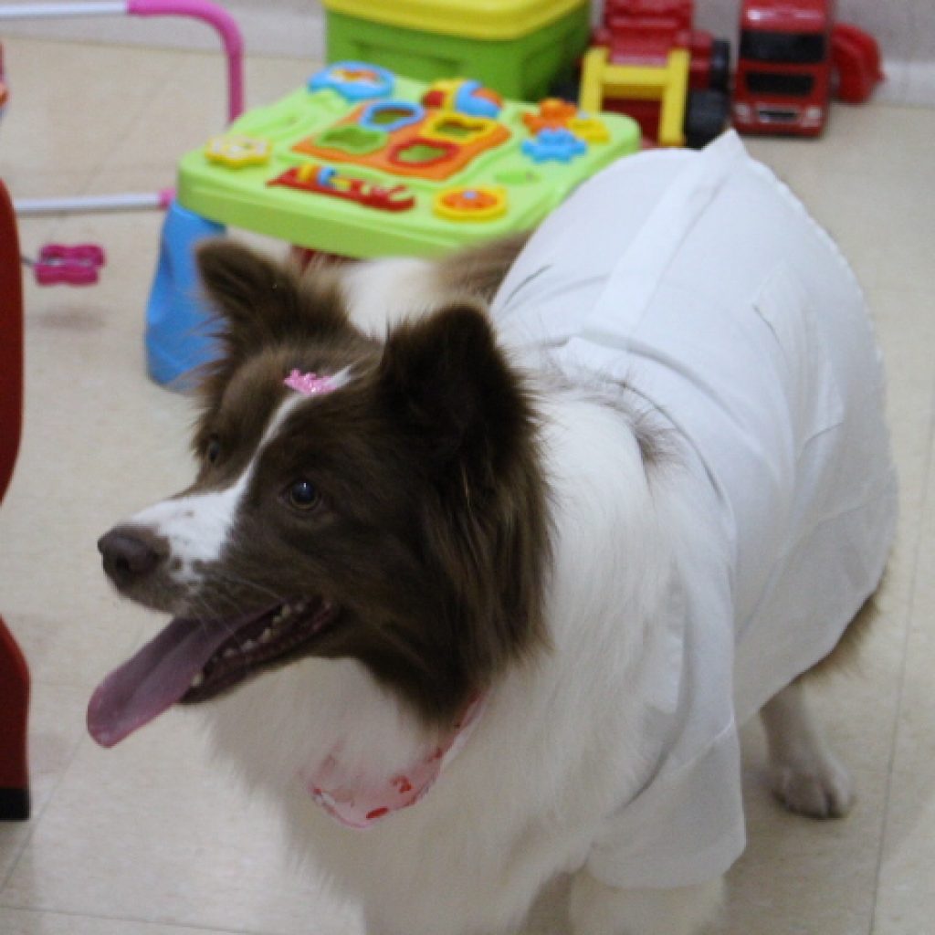 Na tarde dessa segunda-feira (24/10), as crianças da Unidade Pediátrica do Hospital Municipal Getúlio Vargas, sob gestão da Fundação Hospitalar Getúlio Vargas, em Sapucaia do Sul, receberam uma visitante inusitada: Tiffany, uma Border collie utilizada em pet terapia. “Animais terapêuticos ajudam muito em desestressar as crianças quando estão internadas. A mudança de ambiente pode ser bem difícil para elas e, com essa visita, buscamos desestigmatizar esse pensamento do hospital como um lugar ruim”, explica a coordenadora da Linha de Cuidados Mamãe, Bebê e Criança do Hospital, Patrícia Bienert.