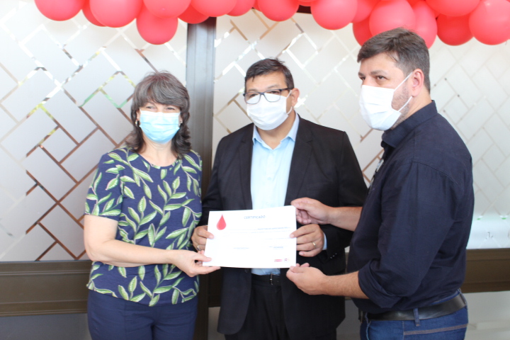 A diretora-adjunta do Hemorgs, Elanir Meneses Zanette, entregou certificados pela parceria e imprescindível desempenho na captação de doadores no HMGV para o prefeito Volmir Rodrigues; para o diretor-geral da FHGV, Tércio Erany Tedesco Júnior e para 14 funcionários do hospital de diferentes áreas: enfermagem, medicina, nutrição e dietética, segurança, infraestrutura e suporte administrativo. As doações de sangue ocorrem de forma agendada através do telefone 51 3451-8200 ramal 160. A coleta de hoje (15/12) foi a última do ano, e as próximas, vão ocorrer dia 26 de janeiro, e nos dias 9 e 23, de fevereiro e março.
