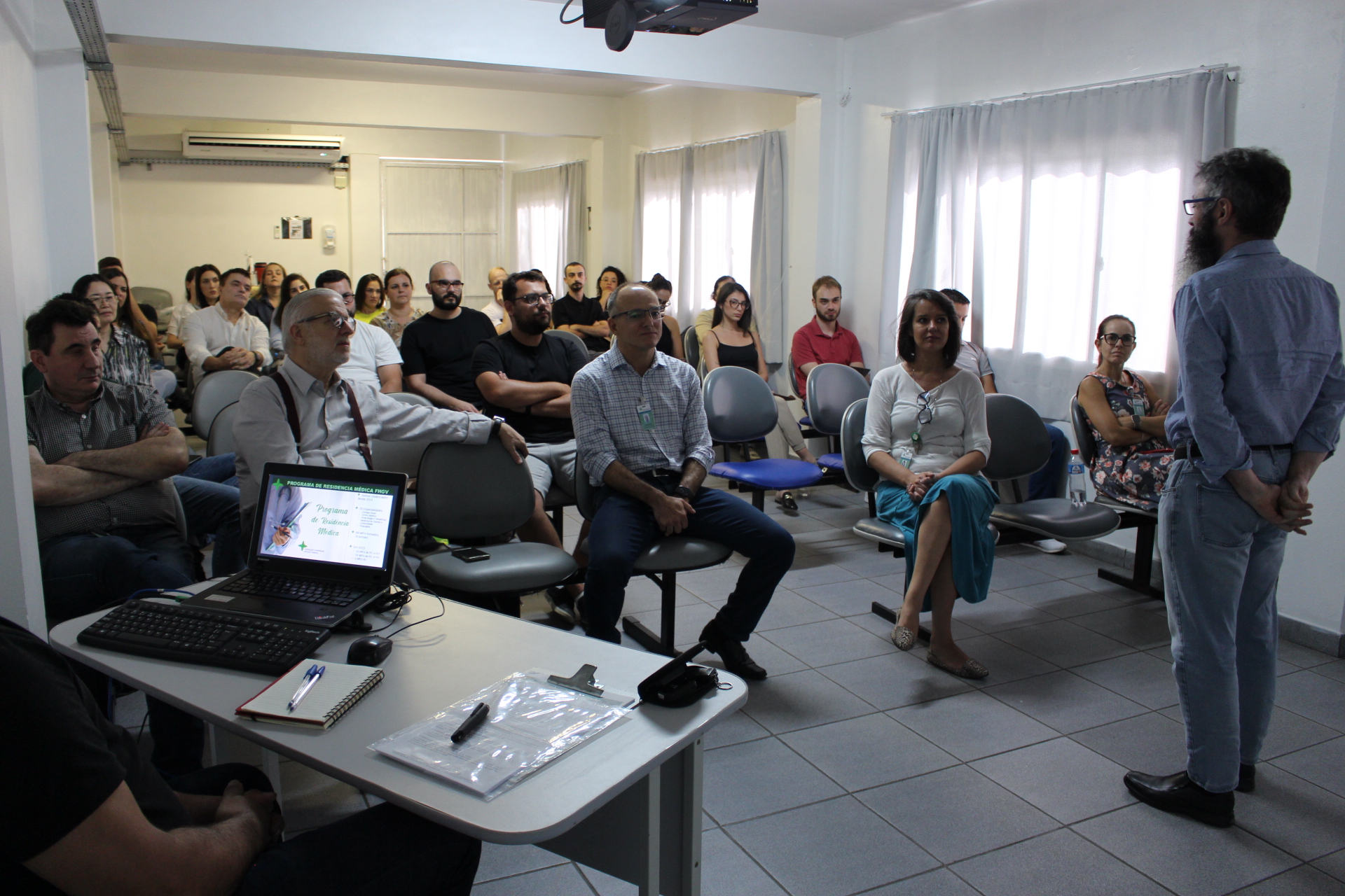 O diretor técnico médico do HMGV, Rafael Scienza Rosito, apresentou as unidades de saúde geridas pela FHGV no polo Sapucaia do Sul e em Tramandaí. No HMGV, onde se concentra as atividades da residência, o médico revelou que acontecem uma média anual de 8.500 internações e mais de 66 mil atendimentos na emergência. Rosito ainda destacou as tecnologias utilizadas no hospital para a prestação de assistência nas áreas de segurança do paciente, infectologia e neurologia, entre outras.