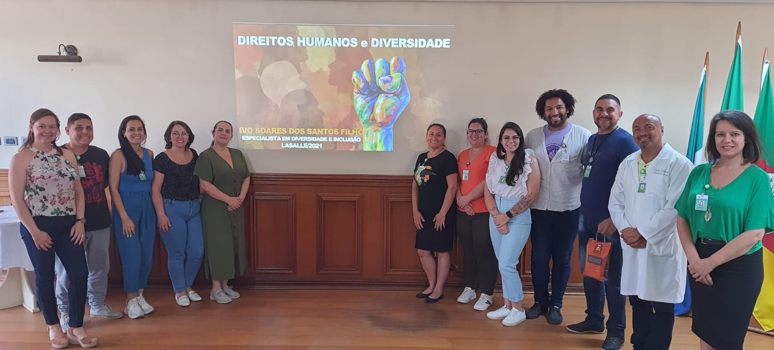 Alusivo ao Dia Internacional dos Direitos Humanos, celebrado em 10 de dezembro, ocorreu neste mês uma série de palestras referentes à temática para os funcionários das unidades da Fundação Hospitalar Getúlio Vargas no polo Sapucaia do Sul e no Hospital Tramandaí. O assunto teve a abordagem do especialista em Direitos Humanos e Diversidade e Inclusão, também colaborador da FHGV, Ivo Soares dos Santos Filho.