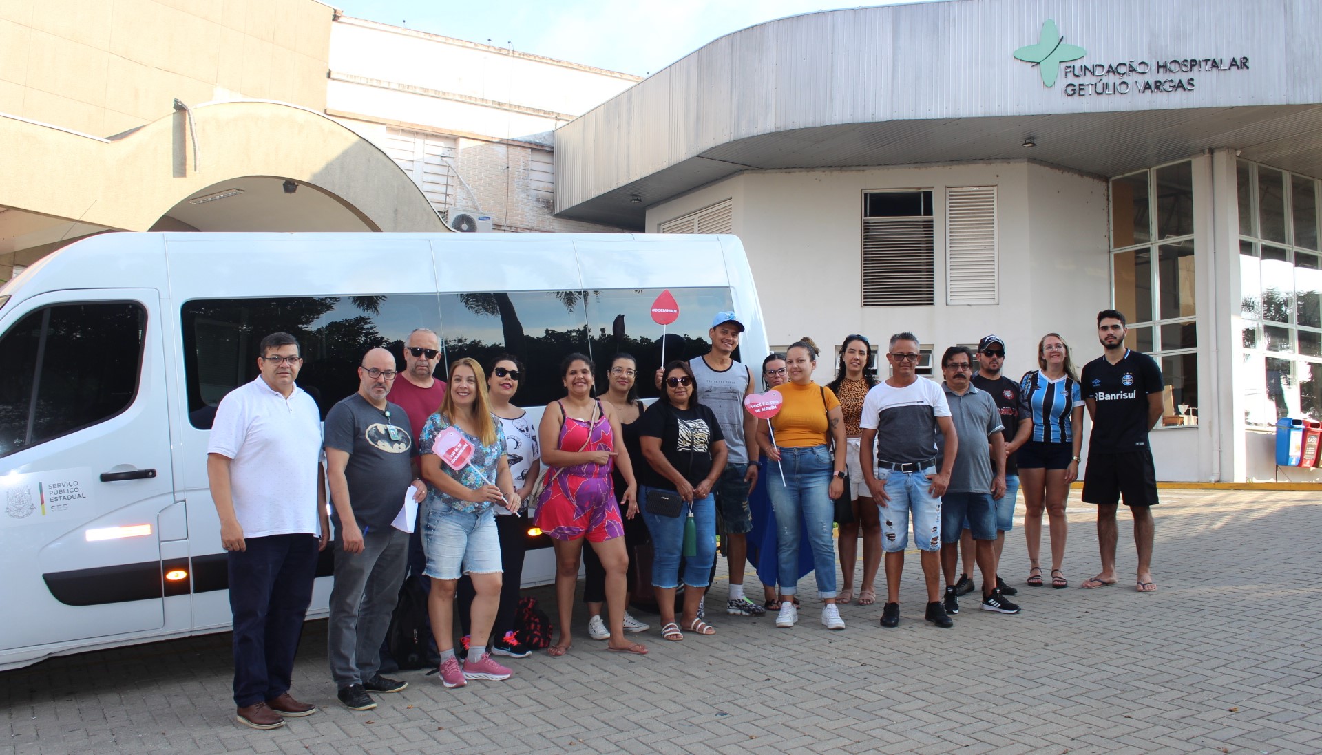 Praticar atividade física, fazer um passeio turístico, dormir até mais tarde… São apenas algumas das opções para preencher a folga do final de semana. E se uma delas for ajudar o próximo? Em uma parceria inédita entre o Hospital Municipal Getúlio Vargas (HMGV) e o Hemocentro do Estado do Rio Grande do Sul (Hemorgs), uma van saiu, às 7h30 desse sábado (24/02), da frente da casa de saúde, em Sapucaia do Sul, levando 15 voluntários para doar sangue em Porto Alegre e, assim, repor os estoques que ficam ainda mais reduzidos no verão.