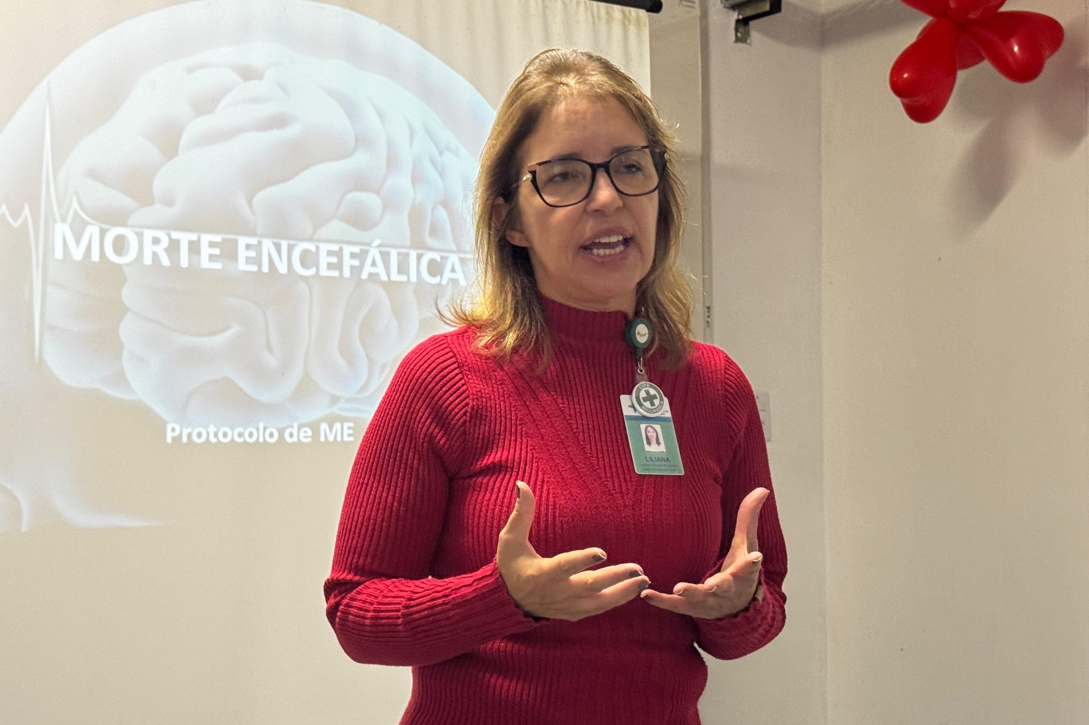 Liliana Pellegrin, coordenadora da CIHDOT do HMGV, agradeceu o grande engajamento dos colegas, o que, segundo ela, demonstra que a pauta desperta interesse dos profissionais. A médica intensivista priorizou o esclarecimento sobre a segurança em relação ao protocolo para confirmação da morte encefálica (ME):