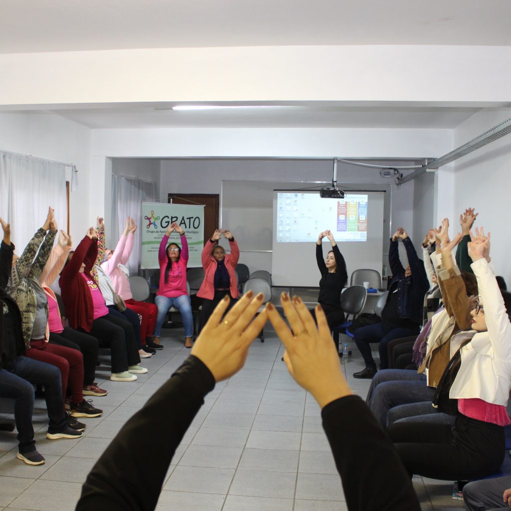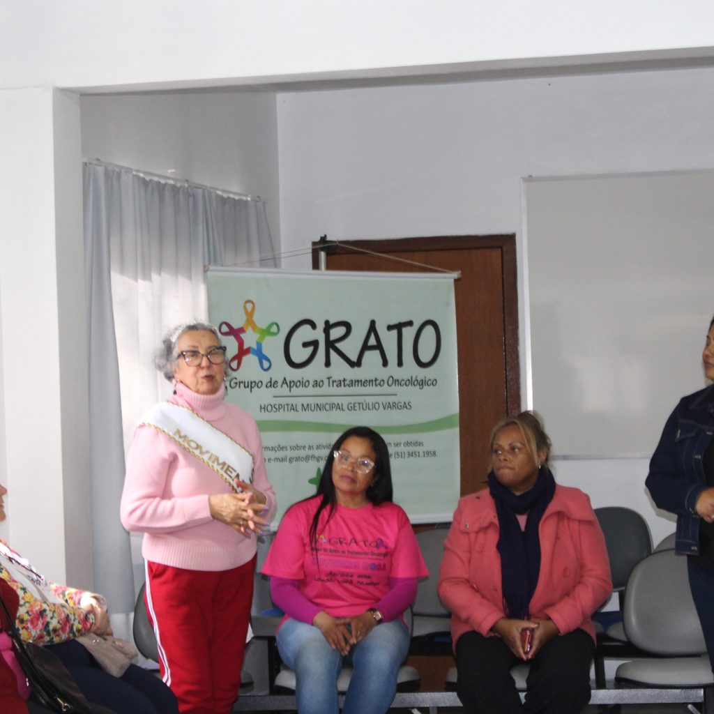 Primeira semana de mês, é dia de encontro do Grupo de Apoio ao Tratamento Oncológico (Grato) na Fundação Hospitalar Getúlio Vargas, em Sapucaia do Sul. Pacientes, apoiadores do trabalho, representante do Clube de Mães e profissionais da saúde puderam receber orientações sobre fisioterapia pélvica.