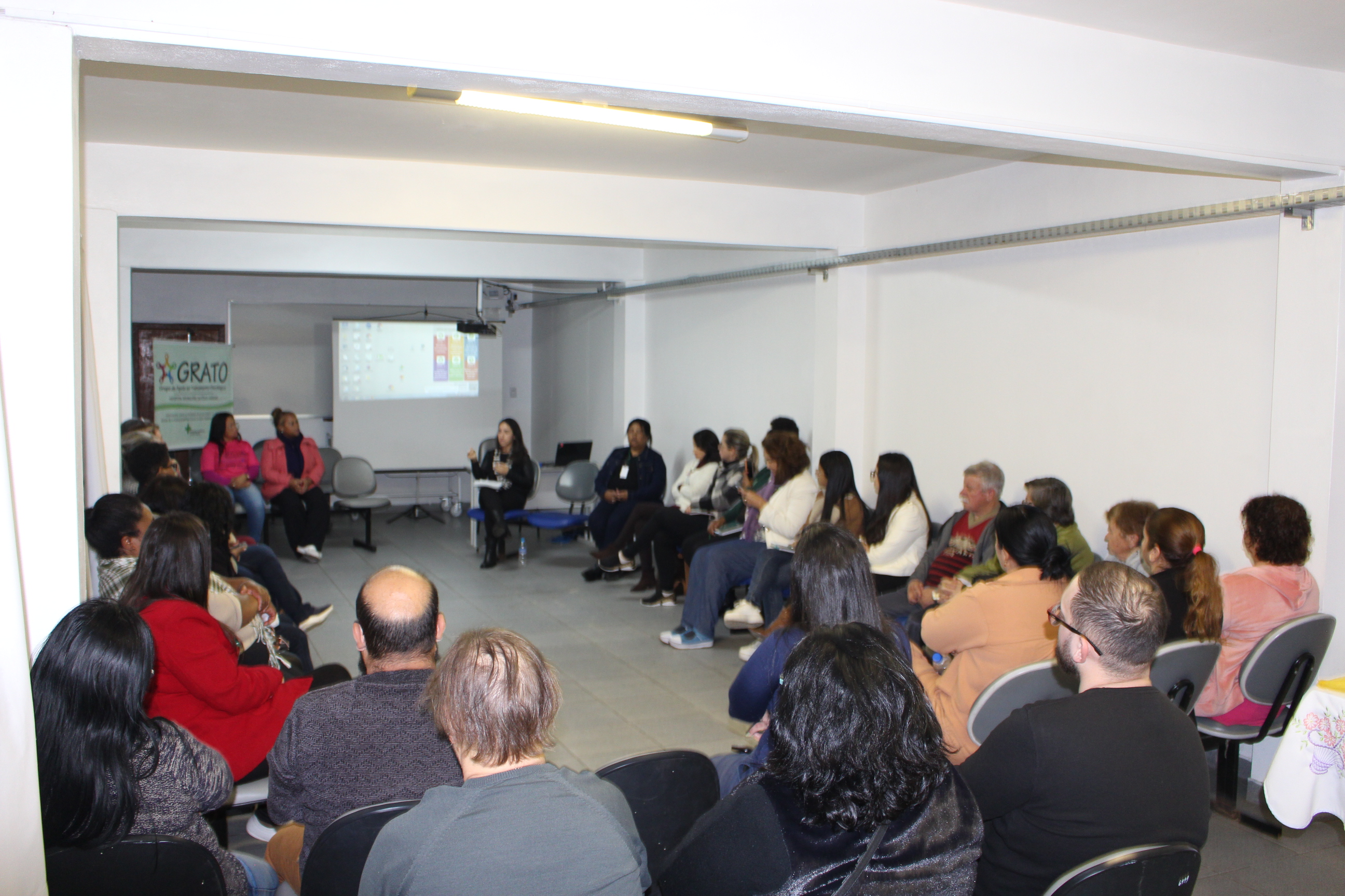 Primeira semana de mês, é dia de encontro do Grupo de Apoio ao Tratamento Oncológico (Grato) na Fundação Hospitalar Getúlio Vargas, em Sapucaia do Sul. Pacientes, apoiadores do trabalho, representante do Clube de Mães e profissionais da saúde puderam receber orientações sobre fisioterapia pélvica.