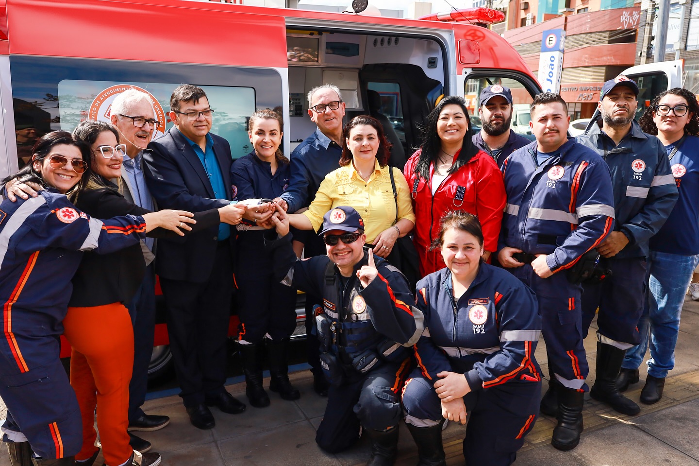 A prefeitura de Sapucaia do Sul realizou a entrega de uma nova ambulância de suporte avançado para o Serviço de Atendimento Móvel de Urgência (Samu). O ato aconteceu na quarta-feira (20/08), dia que o Município completou 64 anos de emancipação. O Samu de Sapucaia existe há 17 anos e funciona com ambulâncias de suporte avançado e suporte básico. O novo veículo de suporte avançado substitui o atual, que possui mais de seis anos de uso e executa uma média de 460 atendimentos mensais.