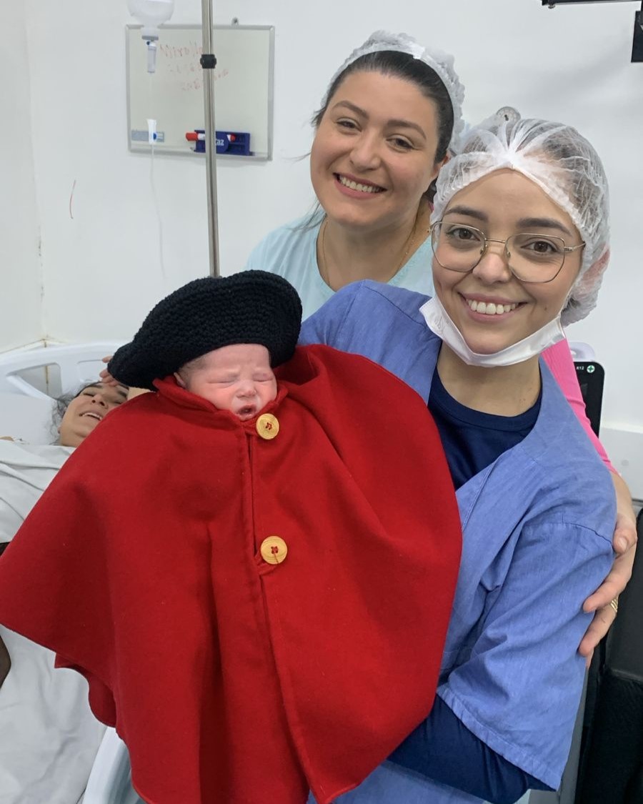 A sua colega técnica de enfermagem Jordana Rotter chamou colegas para verem o gauchinho pronto. “Fico feliz de participar e proporcionar esses registros para os pais e familiares. Sempre estamos fazendo boas recordações cheias de empatia e significado. Ver os bebês aguardados e emocionando com sua chegada é lindo e gratificante. Nossa equipe abraça e humaniza cada parto e sempre entregamos lindas recordações”, declarou Jordana.