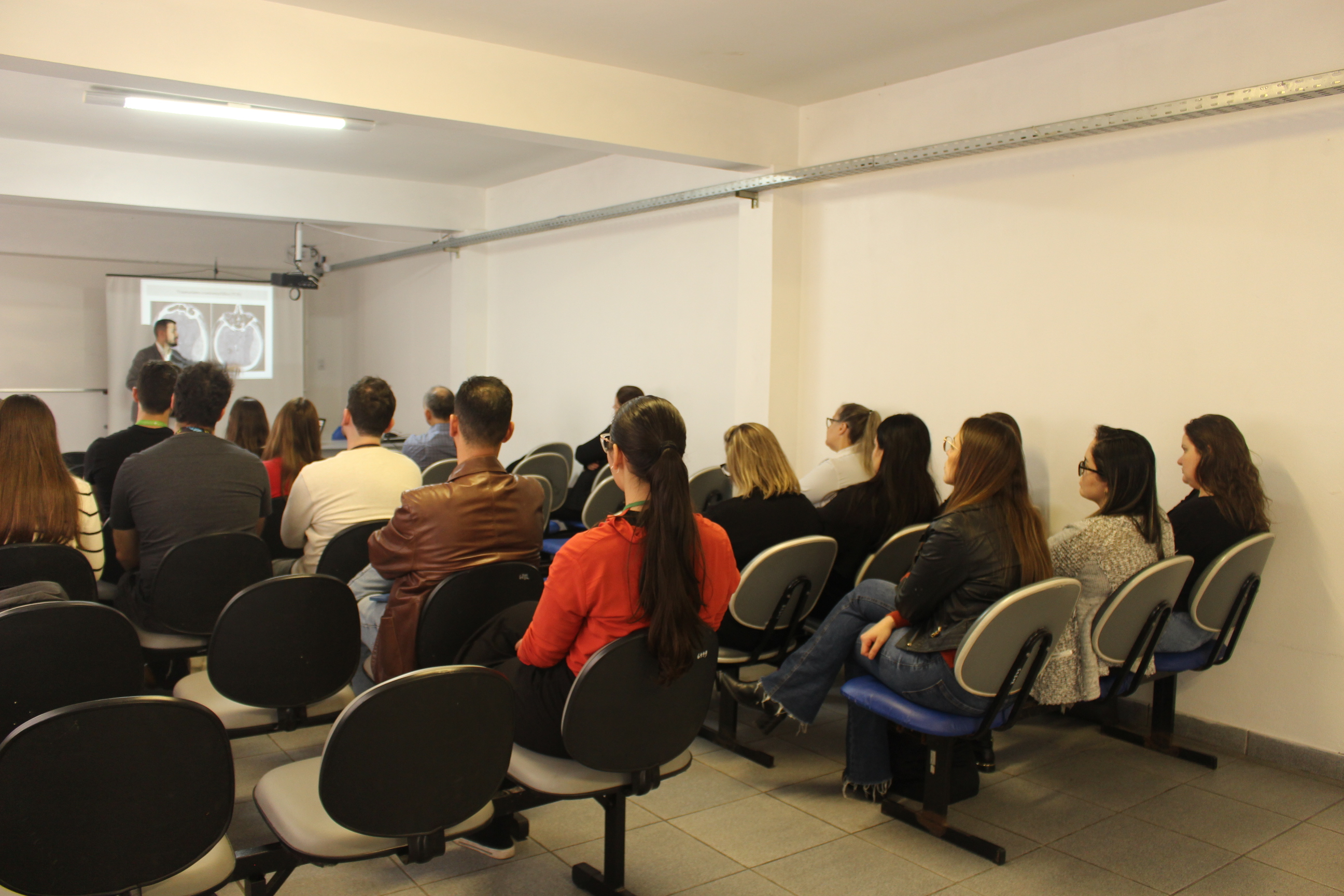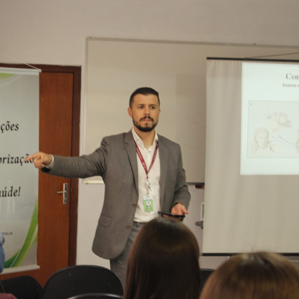 Na programação do Setembro Verde, os médicos residentes da Fundação, que se preparam para se tornarem especialistas através dos Programas de Residência Médica da instituição, participaram de palestra a respeito da morte encefálica e doação de órgãos ministrada pela médica intensiva Liliana Gomes Pellegrin e pelo coordenador da Linha de Cuidado do Acidente Vascular Cerebral da FHGV, Diógenes Guimarães Zãn.