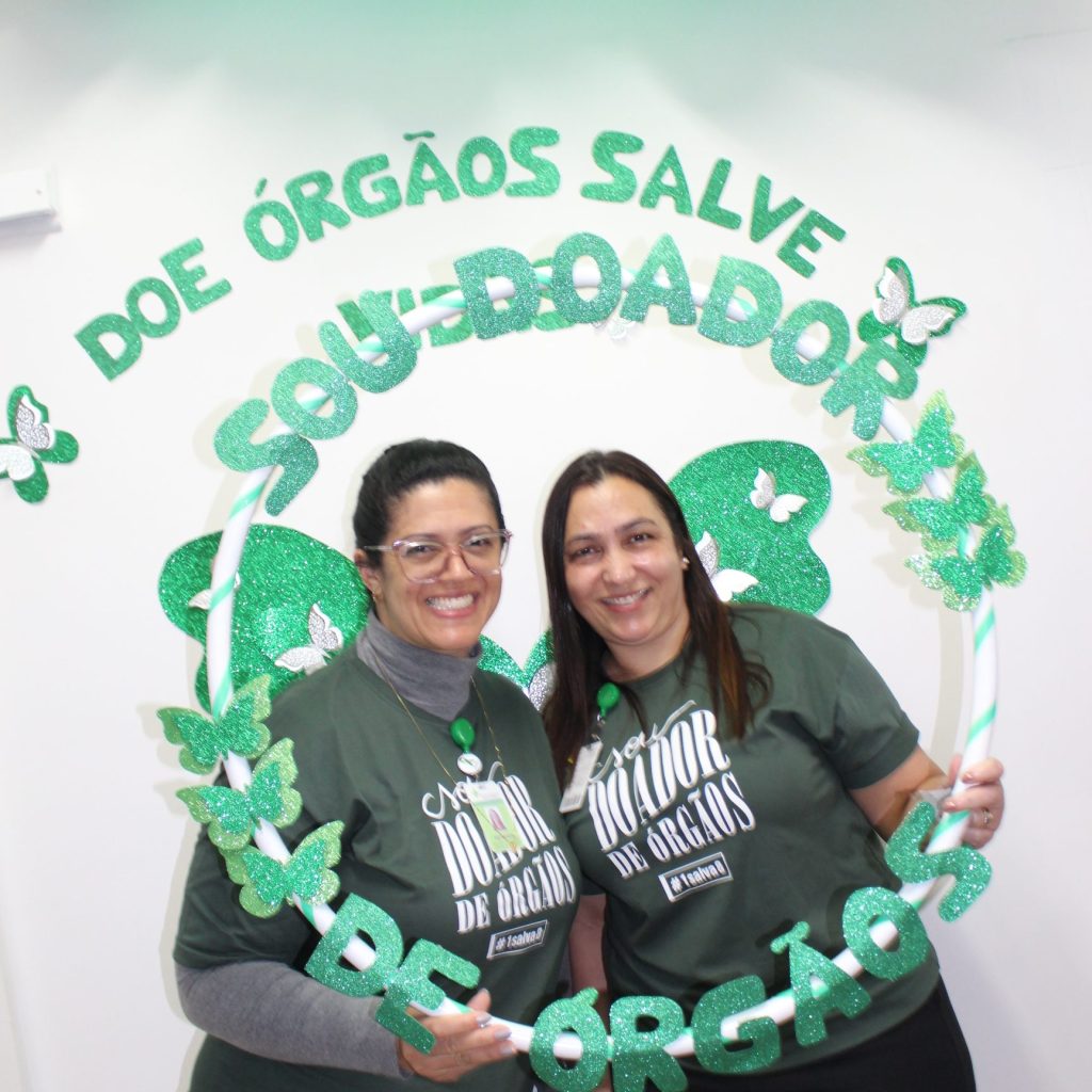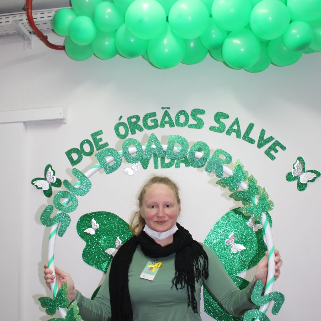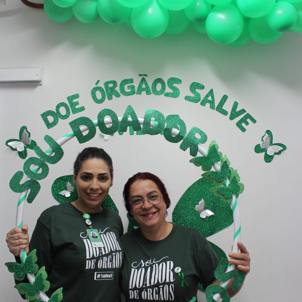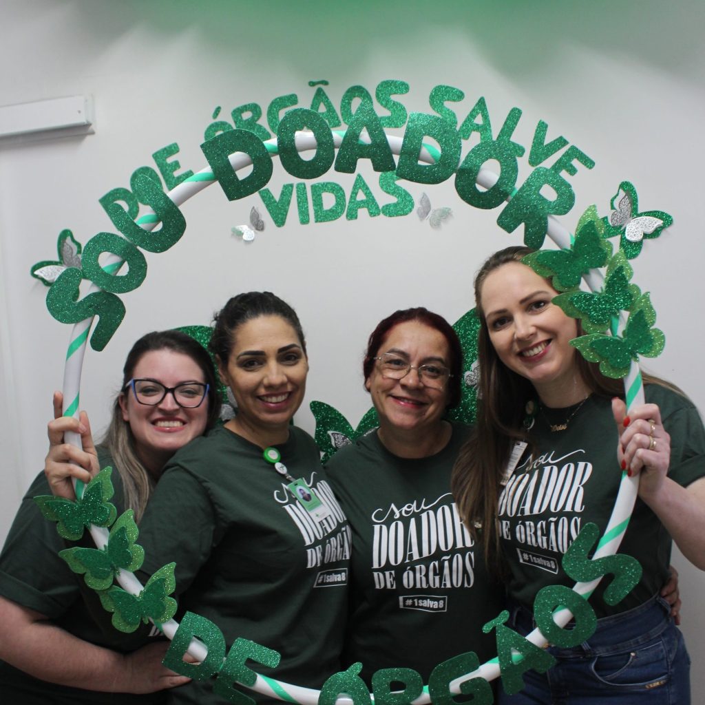 No Setembro Verde, integrantes da Comissão e funcionários da Fundação Hospitalar Getúlio Vargas promovem ações de conscientização sobre o tema. Um momento de incentivo e descontração entre os colegas em frente a sala da CIHDOTT. No próximo dia 27, acontece o Dia Nacional da Doação de Órgãos e a data marca um período de dedicação ao tema.