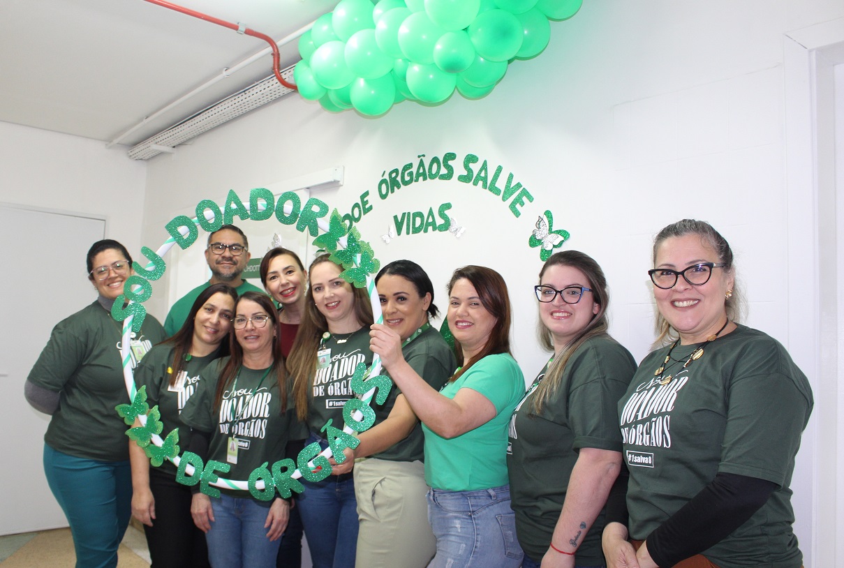 No Setembro Verde, integrantes da Comissão e funcionários da Fundação Hospitalar Getúlio Vargas promovem ações de conscientização sobre o tema. Um momento de incentivo e descontração entre os colegas em frente a sala da CIHDOTT. No próximo dia 27, acontece o Dia Nacional da Doação de Órgãos e a data marca um período de dedicação ao tema.